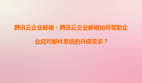 2025-05-20腾讯云企业邮箱:助力企业高效应对邮件系统升级需求 一、企业邮件系统升级的挑战与必要性 随着数字化转型的深入,企业邮件系统作为内外沟通的核心工具,面临安全、容量、效率等多重挑战...