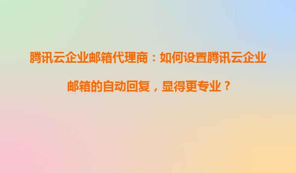 2025-10-29腾讯云企业邮箱代理商:如何设置腾讯云企业邮箱的自动回复,显得更专业? 一、腾讯云企业邮箱的优势解析 作为腾讯云企业邮箱代理商,首先需要了解腾讯云企业邮箱的核心优势,才能更好地为客户...