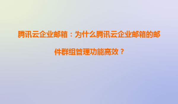2025-05-20腾讯云企业邮箱:邮件群组管理功能的高效之道 在数字化办公场景中,企业邮箱不仅是沟通工具,更是团队协作与管理效率的核心载体。腾讯云企业邮箱凭借其强大的邮件群组管理功能,成为众多企业的首选...