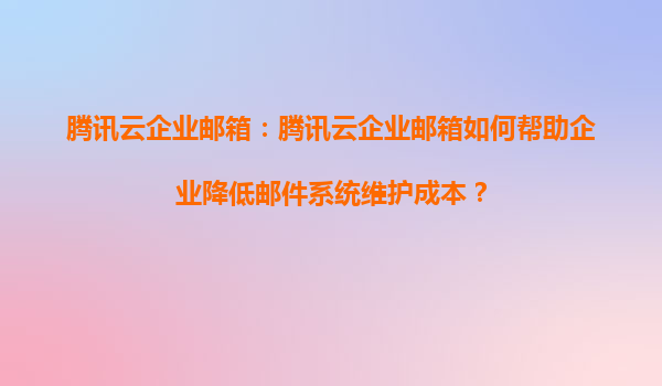 腾讯云企业邮箱:如何助力企业高效降低邮件系统维护成本? 一、免维护的云端架构,释放IT团队压力 腾讯云企业邮箱基于分布式云计算架构设计,企业无需自建物理服务器或租赁机房空间,彻底摆脱硬件...
