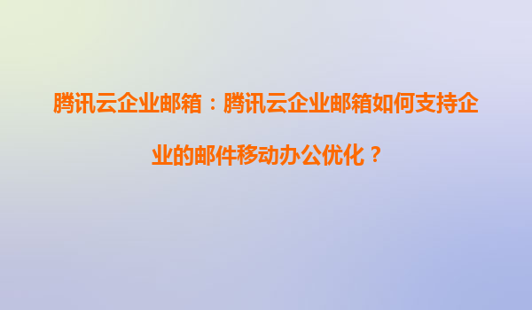 2025-05-20腾讯云企业邮箱:赋能企业邮件移动办公的智能化解决方案 一、移动办公场景下企业邮件的核心挑战 在数字化转型加速的今天,超过78%的企业员工需要通过移动设备处理工作邮件。传统邮箱系统面临多终...