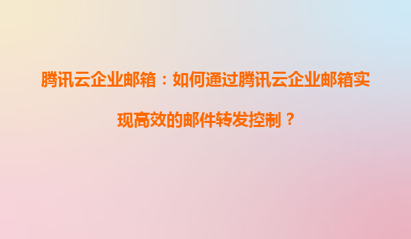 2025-05-19腾讯云企业邮箱:如何通过邮件转发控制提升企业效率与安全性 在数字化办公场景中,企业邮箱不仅是沟通工具,更是信息流转的核心枢纽。腾讯云企业邮箱通过智能化邮件转发控制功能...