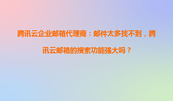 腾讯云企业邮箱代理商指南:如何高效管理海量邮件?搜索功能全解析 企业邮件管理痛点:信息过载与检索难题 随着企业数字化进程加速,邮件作为核心沟通工具的数...