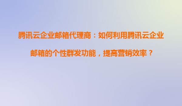 2025-10-29腾讯云企业邮箱代理商:如何利用腾讯云企业邮箱的个性群发功能,提高营销效率? 引言 在数字化时代,营销效率的提升是企业成功的关键因素之一。腾讯云企业邮箱作为一款高效、安全的通信工具,不仅能够满足日常办公...