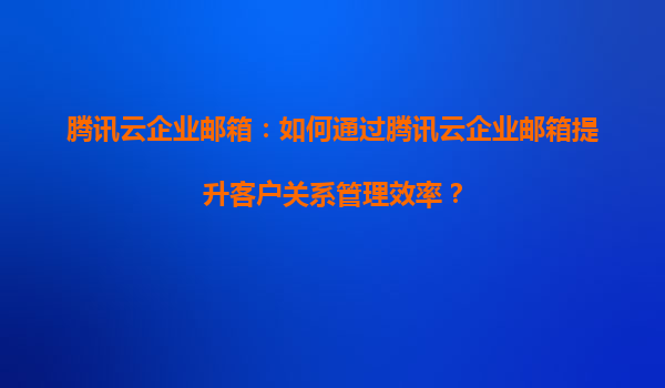 2025-05-17腾讯云企业邮箱:如何通过腾讯云企业邮箱提升客户关系管理效率? 一、客户关系管理(CRM)的数字化需求 在数字化转型的浪潮中,客户关系管理(CRM)已成为企业提升市场竞争力的核心环节。高效的客...