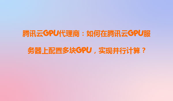 2025-10-29腾讯云GPU代理商指南:如何在腾讯云GPU服务器上配置多块GPU,实现并行计算 为什么选择腾讯云GPU服务器? 腾讯云提供高性能的GPU计算实例,适合深度学习、科学计算、图形渲染等高负载场景。通...