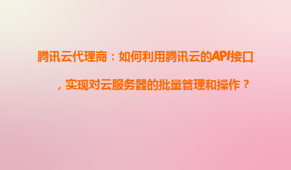 2025-10-29腾讯云代理商:如何利用腾讯云的API接口,实现对云服务器的批量管理和操作? 一、腾讯云API接口的优势 腾讯云提供丰富的API接口,覆盖计算、存储、网络、安全等各类云服务。这些API接口为...