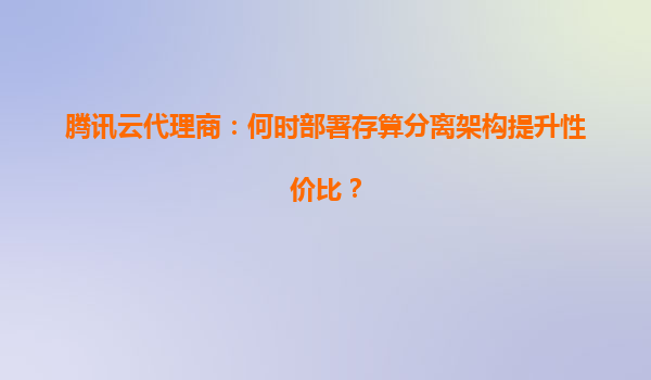 2025-05-17腾讯云代理商:何时部署存算分离架构提升性价比? 一、存算分离架构的核心价值 存算分离架构通过将计算资源与存储资源解耦,实现两者独立扩展和管理。其核心优势包...
