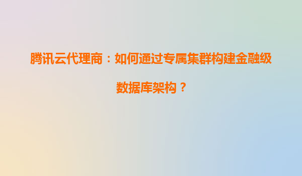 2025-05-15腾讯云代理商:如何通过专属集群构建金融级数据库架构? 一、金融级数据库架构的核心需求 金融行业对数据库架构的要求远超一般行业,需满足以下核心需求: 高可用性与容灾能力:要求99.999%以...