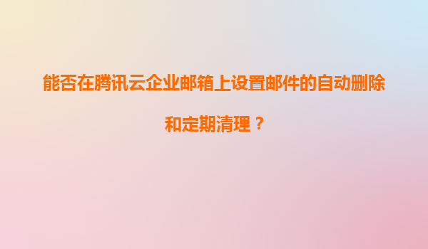 2025-11-22腾讯云企业邮箱:高效管理邮件的自动删除与定期清理功能 引言:企业邮箱管理的必要性 在数字化办公时代,企业邮箱不仅是沟通工具,更是信息存储的重要载体。随着邮件数量激增,如何高效管理存储空间、避免...