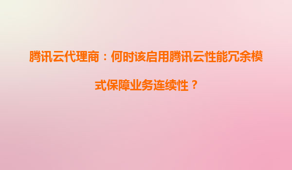 2025-05-15腾讯云代理商:何时该启用腾讯云性能冗余模式保障业务连续性? 一、业务连续性挑战与性能冗余模式的价值 在数字化时代,业务连续性已成为企业核心竞争力的关键指标。腾讯云性能冗余模式通过预分配超量资源...
