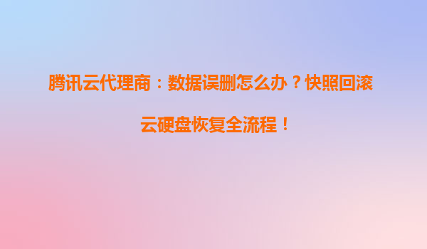 腾讯云代理商:数据误删怎么办?快照回滚+云硬盘恢复全流程解析 一、数据误删的常见场景与风险 在云计算环境中,数据误删可能由多种原因引发: 人为操作失误:管理员误删数据库/配置文件 ...
