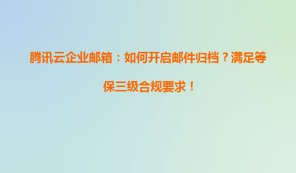 2025-05-09等保三级合规的重要性 随着网络安全法的实施与监管要求升级,企业邮箱作为日常沟通的核心工具,其数据安全与合规性成为企业关注的重点。等保三级作为国家对非银行机构最高级别的信息安全认证,要求...