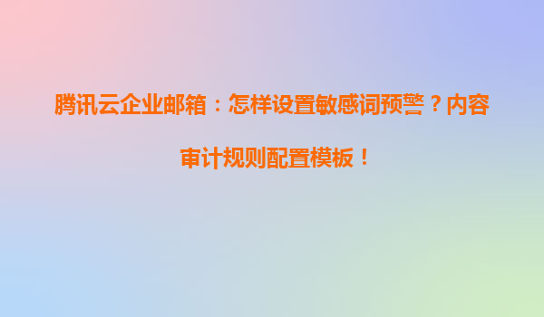 2025-05-09腾讯云企业邮箱:敏感词预警与内容审计规则配置指南 在数字化办公场景中,企业邮箱不仅是沟通工具,更是信息安全的重要防线。腾讯云企业邮箱通过智能化敏感词预警和灵活的内容审计规则,帮助企业实现邮件内容合...