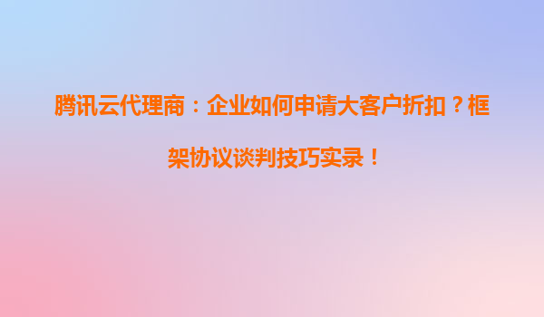 2025-05-09腾讯云代理商:企业如何申请大客户折扣?框架协议谈判技巧实录! 随着企业数字化转型加速,云计算服务成为企业降本增效的核心工具。作为国内领先的云服务提供商,腾讯云凭借技术实力、生态资源和服...