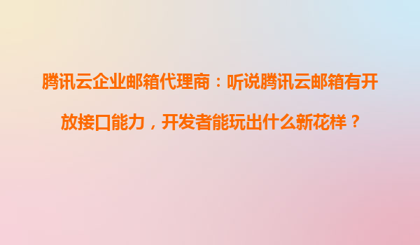 2025-10-28腾讯云企业邮箱开放接口:解锁开发者无限可能 腾讯云企业邮箱的核心优势 作为国内领先的云计算服务商,腾讯云企业邮箱不仅提供稳定的邮件收发服务,更通过强大的开放接口能力赋予开发者灵活扩展的可能。其...