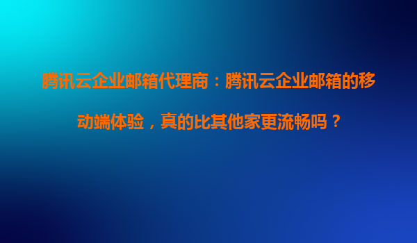腾讯云企业邮箱代理商:腾讯云企业邮箱的移动端体验,真的比其他家更流畅吗? 一、引言 随着移动办公的普及,企业邮箱的移动端体验成为用户选择服务商时的重要考量因素。腾讯云企业邮箱作为国内领先的企业...