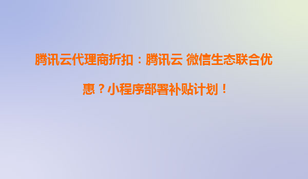 2025-05-09腾讯云+微信生态联合优惠:小程序部署补贴计划全面启动 随着数字化转型加速,腾讯云联合微信生态推出重磅合作计划,通过代理商折扣与小程序部署补贴双重赋能,助力企业低成本实现...