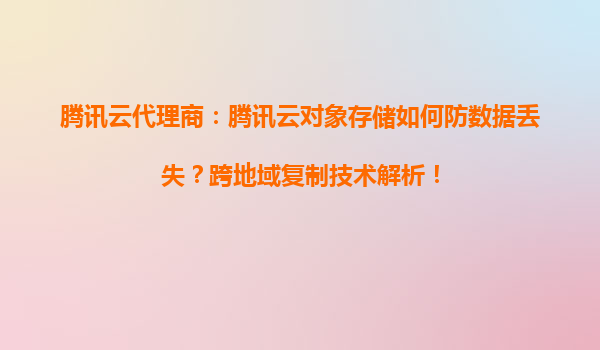 腾讯云对象存储如何防数据丢失?跨地域复制技术解析 一、数据丢失的风险与防护需求 在数字化时代,数据是企业核心资产。硬件故障、网络攻击、自然灾害或人为误操作可能导致数据永久丢失。腾讯云对象存...