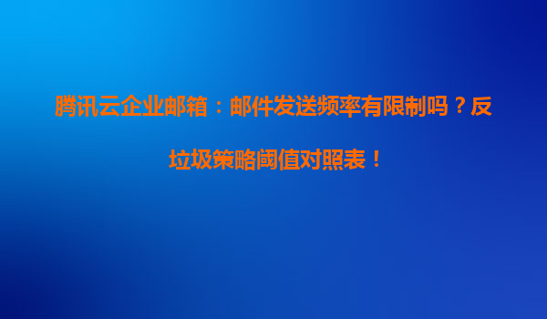 2025-05-09腾讯云企业邮箱:邮件发送频率限制与反垃圾策略解析 一、腾讯云企业邮箱的邮件发送频率限制 腾讯云企业邮箱为确保邮件系统的稳定性和避免滥用,对邮件发送频率设置了合理的限制策略: 每...