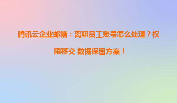 2025-05-09腾讯云企业邮箱:离职员工账号处理与数据保留全方案 一、离职员工账号处理的必要性 员工离职是企业运营中的常见场景,但账号管理不当可能导致数据泄露、权限混乱或业务中断。腾讯云企业邮箱通过权限快...