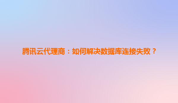 2025-05-01腾讯云代理商如何解决数据库连接失败? 一、数据库连接失败的常见原因 数据库连接失败是企业上云过程中常见的问题,可能由以下原因导致: 配置错误:如IP白名单未开放...