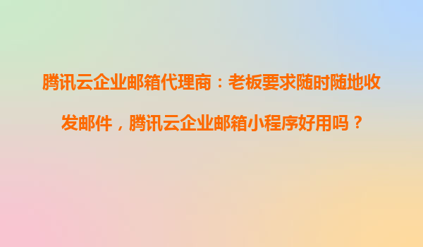腾讯云企业邮箱代理商:随时随地收发邮件,腾讯云企业邮箱小程序好用吗? 一、企业邮箱的移动化需求 在快节奏的现代商业环境中,企业对高效沟通的需求日益增长...