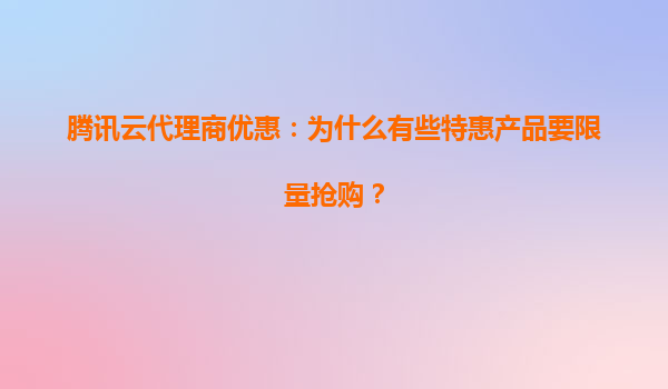 2025-04-28腾讯云代理商优惠:为什么有些特惠产品要限量抢购? 一、腾讯云的核心优势与市场定位 作为全球领先的云计算服务提供商,腾讯云凭借以下优势占据市场重要地位: 技术实力雄厚:分布式计算...