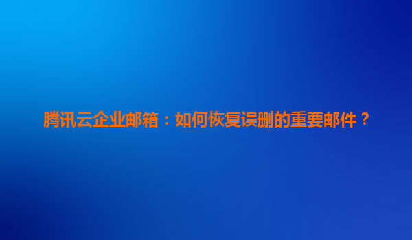 腾讯云企业邮箱:如何恢复误删的重要邮件? 一、误删邮件的常见场景与恢复必要性 在日常工作中,误删重要邮件是许多企业员工可能遇到的问题。无论是操作失误、系统误判,还是邮箱迁移过程中的数据...
