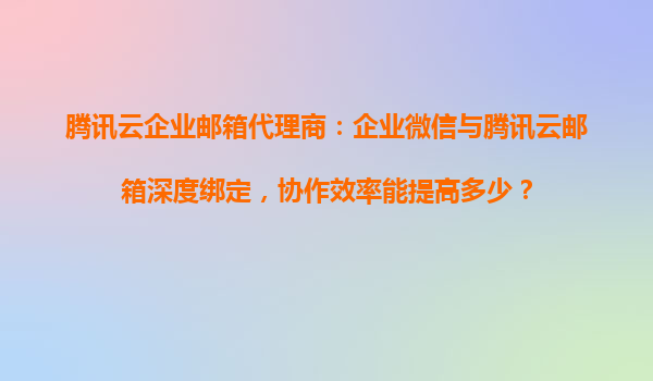 2025-10-27企业微信与腾讯云邮箱深度绑定:协作效率的革新突破 腾讯云企业邮箱的核心优势 腾讯云企业邮箱作为国内领先的企业通信解决方案,依托腾讯强大的技术底座,提供高稳定性、安全性和扩展性。其独有的智能反垃...