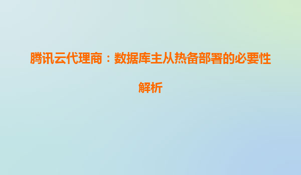 2025-04-27腾讯云代理商解析:数据库主从热备部署的必要性 一、数据库主从热备的核心价值 在数字化时代,数据库作为企业核心业务的数据载体,其稳定性直接影响用户体验与业务连续性。突发硬件故障、网络中断...