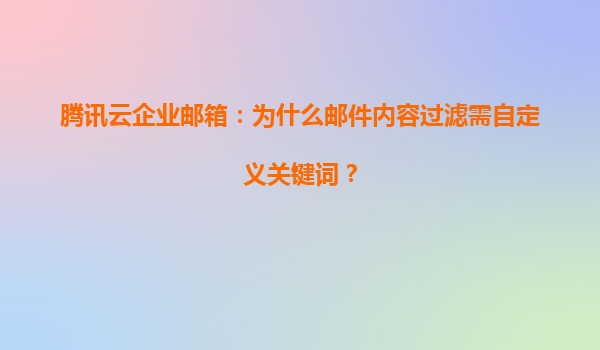 腾讯云企业邮箱:为什么邮件内容过滤需自定义关键词? 一、邮件内容过滤为何成为企业刚需? 在数字化办公场景中,企业邮箱日均承载着大量敏感信息交互。根据IDC报告显示,2023年全球企业因邮件泄露导致...