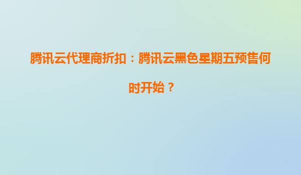 2025-04-24腾讯云黑色星期五预售活动时间公布 据腾讯云官方消息,2023年腾讯云黑色星期五预售活动将于11月15日正式启动。作为全球云计算领域的重要促销节点,此次预售将面向企业及开发者推出涵盖云服务器、数...