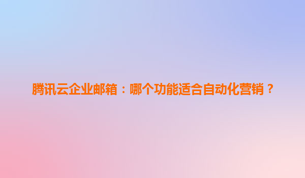 2025-04-24腾讯云企业邮箱:自动化营销的核心功能与优势解析 一、为什么企业需要自动化营销工具? 在数字化营销时代,企业需要通过精准触达、高效管理和数据分析实现客户...