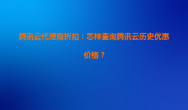 2025-04-24腾讯云代理商折扣:如何查询腾讯云历史优惠价格? 一、为什么需要关注腾讯云历史优惠价格? 腾讯云作为国内领先的云计算服务商,经常推出限时折扣、新用户专属优惠、节日促销等活动。但...
