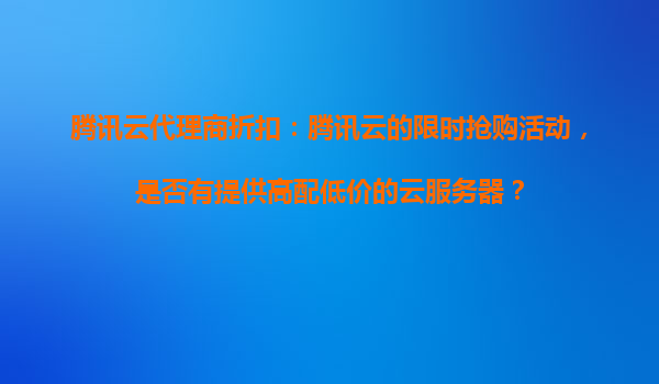 2025-10-26腾讯云代理商折扣:腾讯云的限时抢购活动,是否有提供高配低价的云服务器? 1.腾讯云限时抢购活动的核心优势 腾讯云作为国内领先的云计算服务提供商,其限时抢购活动向来以高性价比著称。代理商折扣叠...