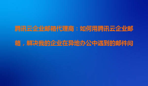 2025-10-26腾讯云企业邮箱代理商:如何用腾讯云企业邮箱,解决我的企业在异地办公中遇到的邮件问题? 在当今数字化时代,异地办公已成为许多企业的常态。然而,随之而来的邮件沟通问题,如邮件延迟、数据安全、管理混乱等...