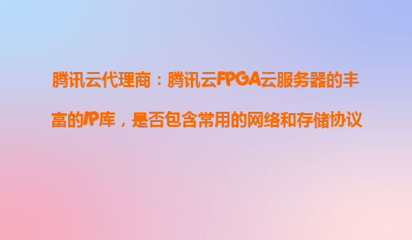 2025-10-26腾讯云代理商:腾讯云FPGA云服务器的丰富IP库与其网络/存储协议支持解析 一、腾讯云FPGA云服务器的核心优势 腾讯云FPGA(现场可编程门阵列)云服务器凭借其高性能、低延迟和可定制化特性...