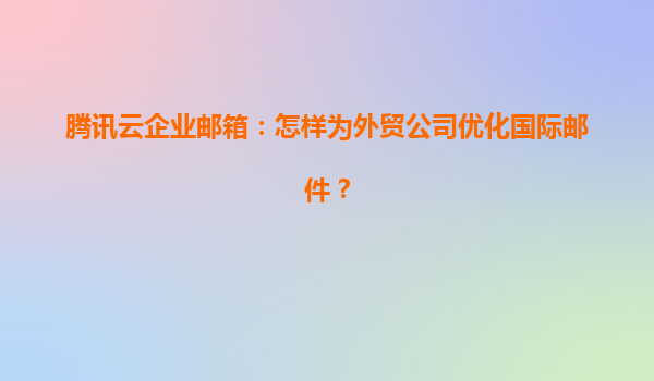 2025-04-22腾讯云企业邮箱:如何为外贸公司优化国际邮件服务? 一、外贸企业国际邮件的主要痛点 外贸公司在跨境沟通中常面临以下挑战: 邮件延迟与退信:跨国网络节点复杂导致传输效率低下 ...