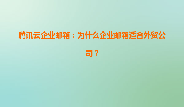 2025-04-22腾讯云企业邮箱:为什么企业邮箱适合外贸公司? 一、外贸公司的核心需求与邮箱的重要性 外贸企业的业务场景高度依赖国际化的沟通工具,而企业邮箱作为商务往来的核心媒介,需满足以下需求: ...