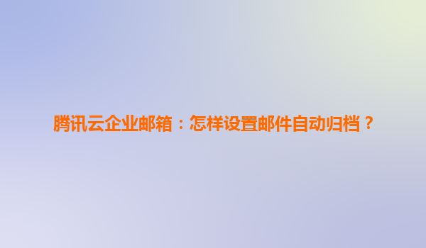 2025-04-21腾讯云企业邮箱:邮件自动归档功能详解 一、腾讯云企业邮箱的核心优势 腾讯云企业邮箱作为企业级通信解决方案,深度融合腾讯多年技术积累与云计算能力,提供高可用性、安全稳定的邮件服务。...