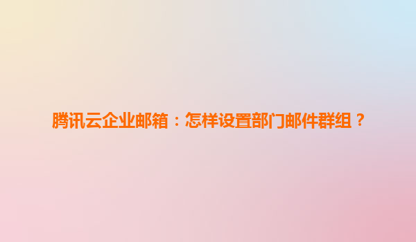 2025-04-21腾讯云企业邮箱:如何设置部门邮件群组? 一、部门邮件群组的重要性 在企业日常运营中,高效沟通是业务推进的关键。部门邮件群组功能允许企业通过一个公共邮箱地址快速触达整个部门或特定团队,避免重...
