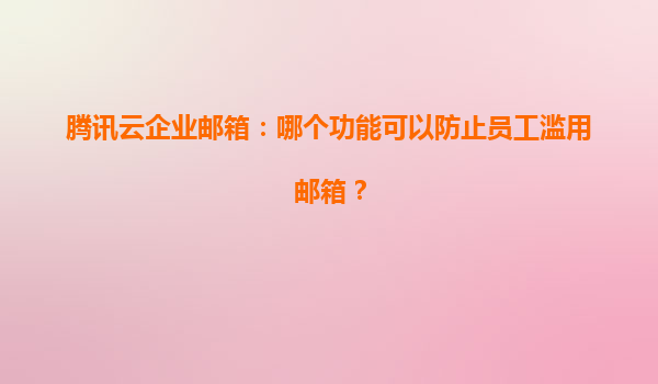 2025-04-21腾讯云企业邮箱:如何通过功能设计防止员工滥用邮箱? 一、企业邮箱滥用的潜在风险与管控需求 在数字化办公场景中,企业邮箱不仅是沟通工具,更是企业数据资产的核心载体。员工可能通过邮件发送敏感信...