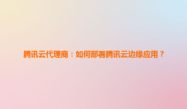 2025-04-19腾讯云代理商如何部署腾讯云边缘应用? 一、腾讯云在边缘计算领域的核心优势 作为国内领先的云服务提供商,腾讯云通过以下核心能力赋能边缘应用部署: ...