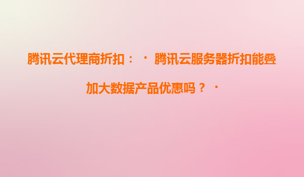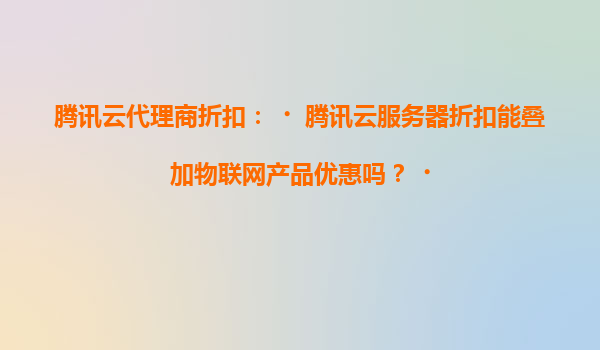 2025-04-19腾讯云代理商折扣与物联网产品优惠叠加解析 作为国内领先的云计算服务商,腾讯云凭借其技术实力、产品生态和灵活定价策略,成为众多企业上云的首选。针对用户关心的“代理商折扣能否叠加物联网产品...