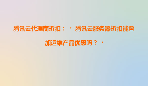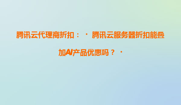 2025-04-19腾讯云代理商折扣与AI产品优惠叠加政策解析 一、腾讯云代理商折扣的核心优势 腾讯云代理商折扣是用户降低上云成本的重要方式。通过官方授权的代理商渠道,用户可享...