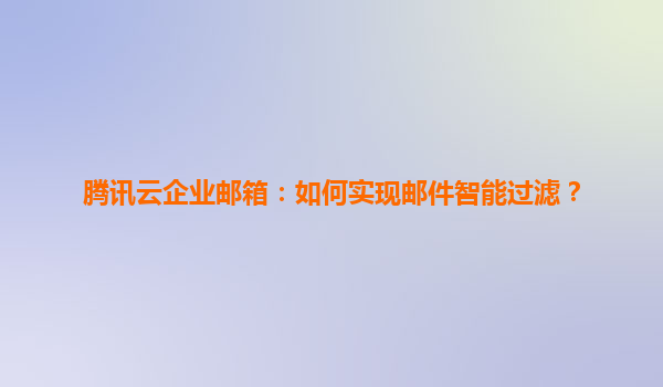2025-04-18腾讯云企业邮箱:如何实现邮件智能过滤? 随着企业数字化进程的加速,电子邮件作为核心沟通工具,其安全性与效率成为企业管理的关键。腾讯云企业邮箱凭借强大的技术能力与智能算法,结合腾讯云代理...