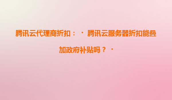 2025-04-18腾讯云服务器折扣与政府补贴叠加解析:如何实现成本最优? 一、腾讯云服务器折扣政策解析 腾讯云作为国内领先的云计算服务商,通过官方直营+代理商双渠道为用户提供灵活的成本优化方案: ...