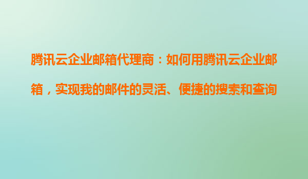2025-10-26腾讯云企业邮箱代理商指南:如何实现邮件的灵活、便捷搜索与查询 一、腾讯云企业邮箱的核心搜索优势 作为腾讯云企业邮箱代理商,我们深刻理解高效邮件管理对企业的重要性。腾讯云企业邮箱基于以下技术优势提供行业...