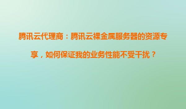 2025-10-26腾讯云代理商:腾讯云裸金属服务器的资源专享如何保障业务性能不受干扰? 一、腾讯云裸金属服务器的核心优势 腾讯云裸金属服务器(BareMetalServer,BMS)是...